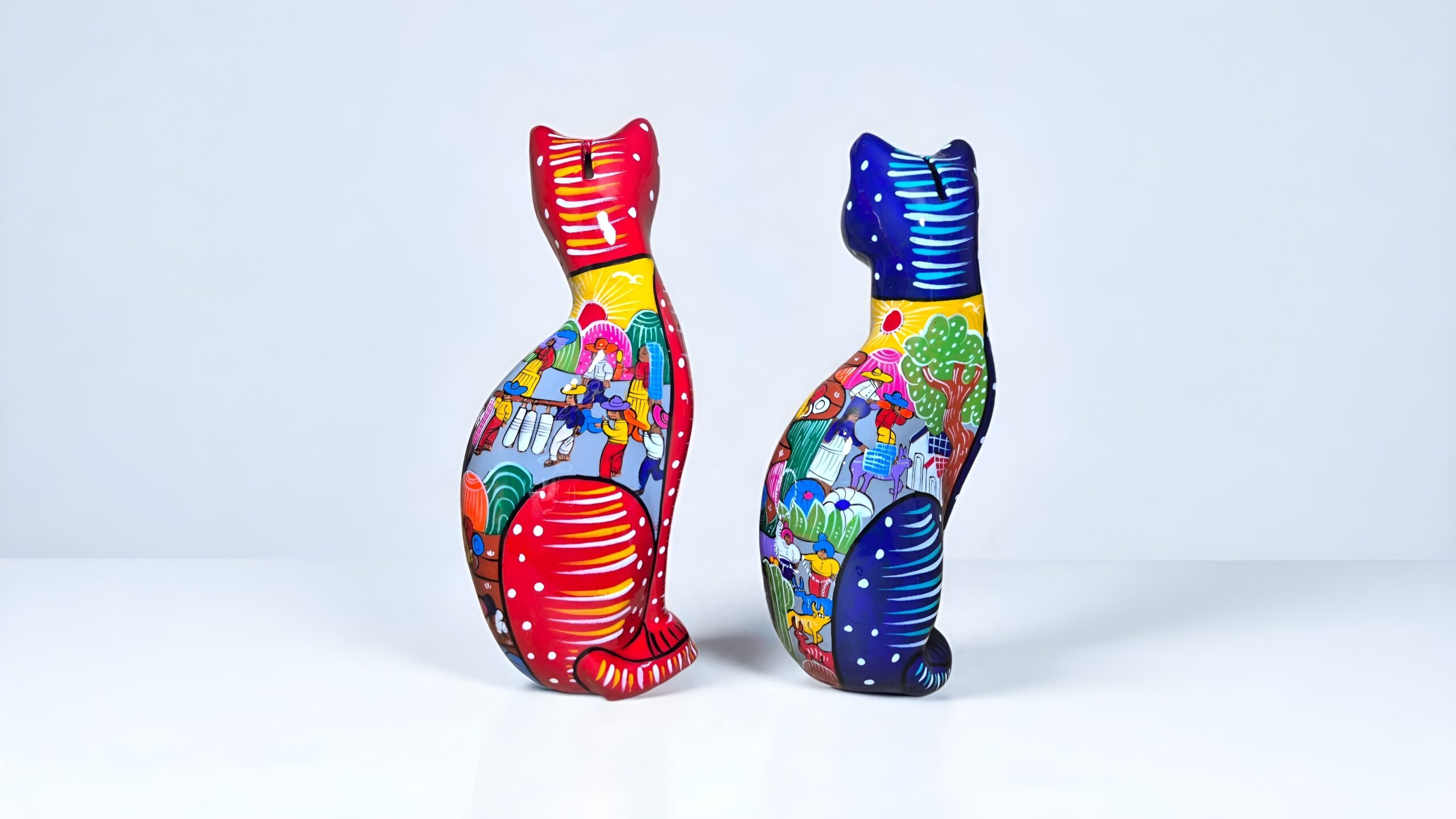 Nuestras alcancias de gato artesanales son más que simples recipientes para ahorros; son auténticas obras de arte que narran historias y preservan las tradiciones mexicanas. Cada pieza es pintada a mano con dedicación y amor, convirtiéndola en un tesoro único e irrepetible.