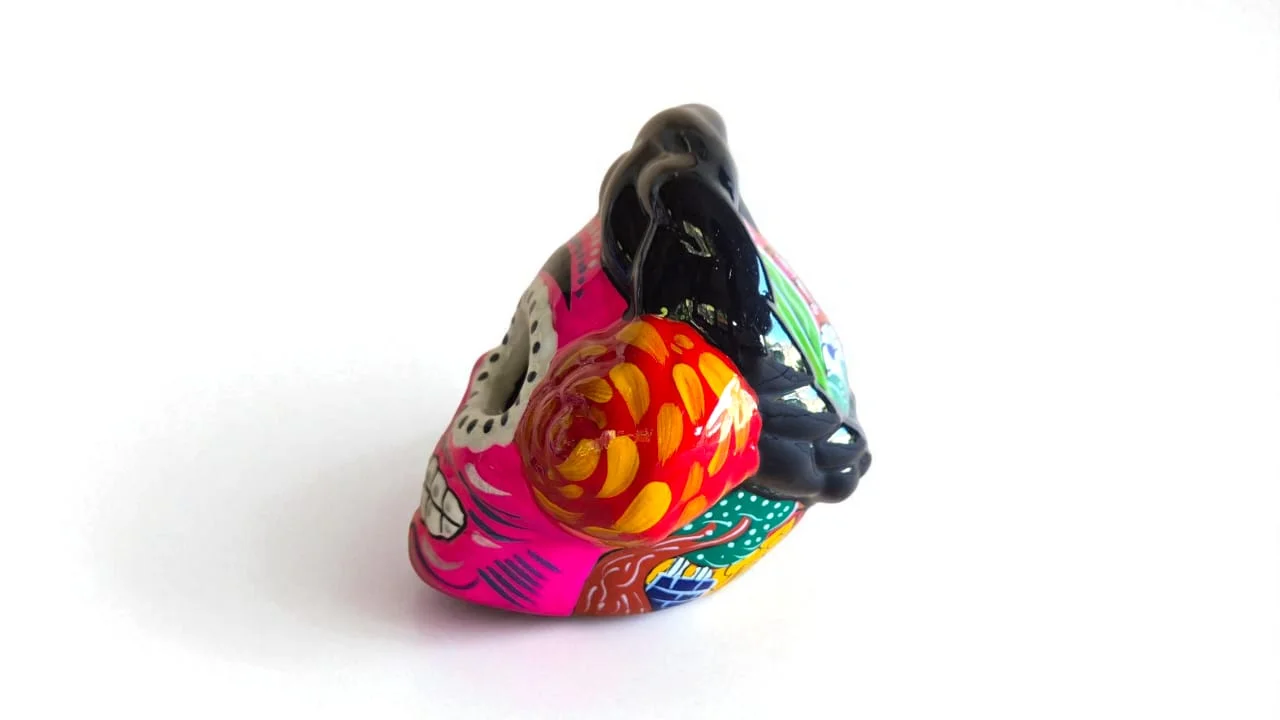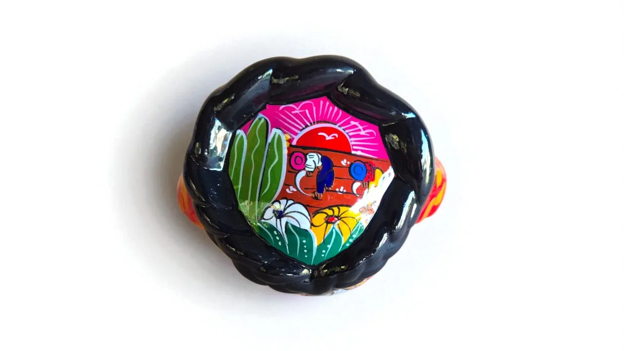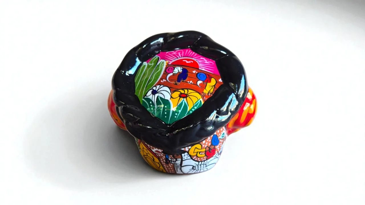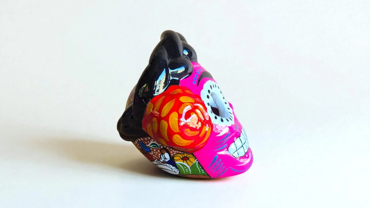 Calaveras Frida Kahlo artesanales de barro pintadas a mano, con diseño de historia que plasma tradiciones y costumbres mexicanas. Cada pieza es única e irrepetible.